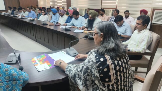 ਬਰਨਾਲਾ, 8 ਜੁਲਾਈ। ਜ਼ਿਲ੍ਹਾ ਬਰਨਾਲਾ ਨੂੰ ਹਰਿਆ-ਭਰਿਆ ਬਣਾਉਣ ਲਈ ਵਿਭਾਗਾਂ ਨੂੰ ਪੌਦਿਆਂ ਦੀ ਵੰਡ ਕਰਨ ਵਾਸਤੇ ਡਿਪਟੀ ਕਮਿਸ਼ਨਰ ਬਰਨਾਲਾ ਮੈਡਮ ਪੂਨਮਦੀਪ ਕੌਰ ਨੇ ਅੱਜ ਇੱਥੇ ਜ਼ਿਲ੍ਹਾ ਪ੍ਰਬੰਧਕੀ ਕੰਪਲੈਕਸ ਦੇ ਮੀਟਿੰਗ ਹਾਲ ਵਿਖੇ ਵੱਖ ਵੱਖ ਵਿਭਾਗਾਂ ਨਾਲ ਮੀਟਿੰਗ ਕੀਤੀ।