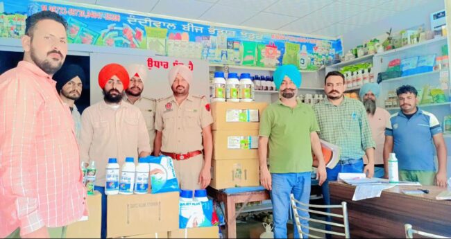 ਚੰਡੀਗੜ੍ਹ, 29 ਜੁਲਾਈ:। ਮੁੱਖ ਮੰਤਰੀ ਸ. ਭਗਵੰਤ ਸਿੰਘ ਮਾਨ ਦੇ ਦਿਸ਼ਾ-ਨਿਰਦੇਸ਼ਾਂ ‘ਤੇ ਸੂਬੇ ਵਿੱਚ ਨਕਲੀ ਖਾਦਾਂ ਅਤੇ ਕੀਟਨਾਸ਼ਕਾਂ ਦੇ ਡੀਲਰਾਂ ‘ਤੇ ਸ਼ਿਕੰਜਾ ਕੱਸਦਿਆਂ ਪੰਜਾਬ ਦੇ ਖੇਤੀਬਾੜੀ ਅਤੇ ਕਿਸਾਨ ਭਲਾਈ ਵਿਭਾਗ ਨੇ ਅੱਜ ਮਾਨਸਾ ਜ਼ਿਲ੍ਹੇ ਦੇ ਪਿੰਡ ਝੰਡੂਕੇ ਵਿਖੇ ਅਣ-ਅਧਿਕਾਰਤ ਕੀਟਨਾਸ਼ਕਾਂ ਦਾ ਵੱਡਾ ਸਟਾਕ ਜ਼ਬਤ ਕੀਤਾ ਹੈ।
