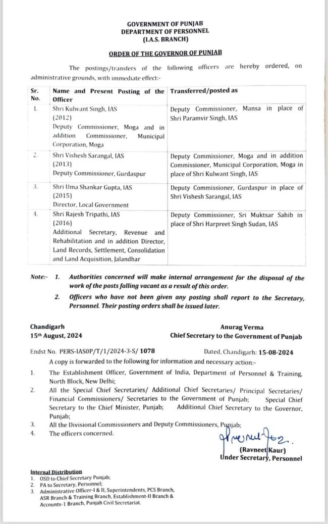 Homeਪੰਜਾਬਵੱਖ ਵੱਖ ਜ਼ਿਲਿਆਂ ਦੇ DC ਬਦਲੇ The PostmailAugust 16, 2024 12:00 pm 0 ਪੰਜਾਬ ਸਰਕਾਰ ਵੱਲੋਂ ਵੱਖ ਵੱਖ ਜਿਲ੍ਹਿਆਂ ਦੇ ਡੀਸੀ ਬਦਲੇ ਗਏ ਹਨ। CATEGORIES ਪੰਜਾਬ Share ThisAUTHORThe Postmail