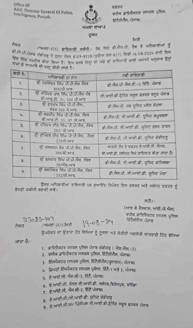 Homeਪੰਜਾਬ1 IPS ਤੇ 9 ਪੀਪੀਐਸ ਅਧਿਕਾਰੀਆਂ ਦੇ ਤਬਾਦਲੇ The PostmailAugust 20, 2024 4:21 pm 0 ਪੰਜਾਬ ਸਰਕਾਰ ਵੱਲੋਂ ਇੱਕ ਆਈਪੀਐਸ ਦੇ 9 ਪੀਪੀਐਸ ਅਧਿਕਾਰੀਆਂ ਦੇ ਤਬਾਦਲੇ ਕੀਤੇ ਗਏ ਹਨ। CATEGORIES ਪੰਜਾਬ Share ThisAUTHORThe Postmail