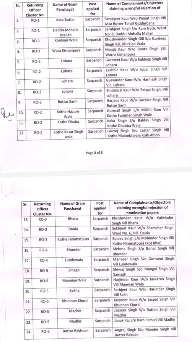 ਗਿੱਦੜਵਾਹਾ ਹਲਕੇ ਵਿੱਚ ਕਈ ਪਿੰਡਾਂ ਵਿੱਚ ਨਾਮਜਦਗੀਆਂ ਰੱਦ ਹੋਣ ਤੋਂ ਬਾਅਦ ਉਮੀਦਵਾਰ ਹਾਈ ਕੋਰਟ ਪਹੁੰਚੇ ਸਨ।