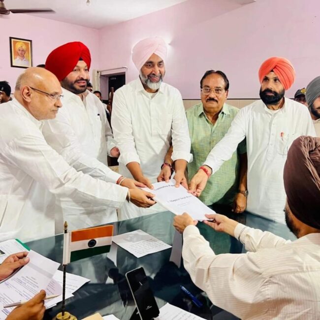 ਕੇਂਦਰੀ ਲੀਡਰਸ਼ਿਪ ਦੀ ਮੌਜੂਦਗੀ ਵਿੱਚ ਮਨਪ੍ਰੀਤ ਸਿੰਘ ਬਾਦਲ ਨੇ ਗਿੱਦੜਬਾਹਾ ਤੋਂ ਨਾਮਜਦਗੀ ਪੱਤਰ ਭਰੇ