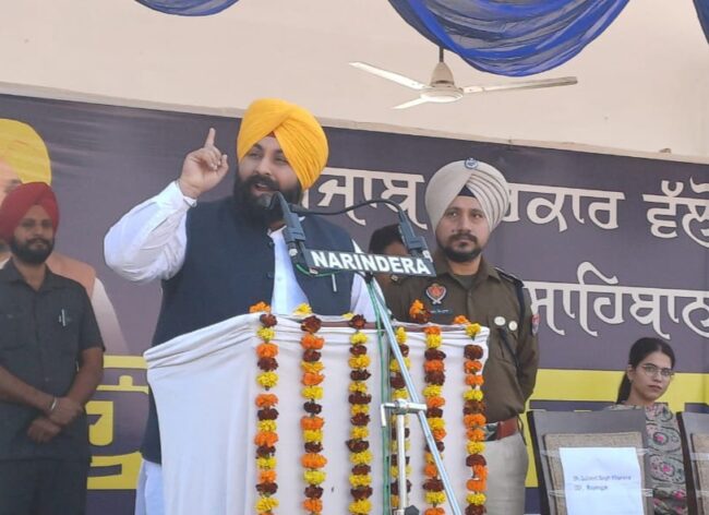 ਇਨ੍ਹਾਂ ਸ਼ਬਦਾ ਦਾ ਪ੍ਰਗਟਾਵਾ ਲੋਕ ਸੰਪਰਕ, ਸਕੂਲੀ ਸਿੱਖਿਆ, ਉਚੇਰੀ ਤੇ ਤਕਨੀਕੀ ਸਿੱਖਿਆ ਮੰਤਰੀ ਸ. ਹਰਜੋਤ ਸਿੰਘ ਬੈਂਸ ਨੇ ਜ਼ਿਲ੍ਹਾ ਰੂਪਨਗਰ ਦੇ 3410 ਪੰਚਾਂ ਨੂੰ ਸਹੁੰ ਚੁੱਕਣ ਲਈ ਪੁਲਿਸ ਲਾਈਨ ਗਰਾਊਂਡ ਰੂਪਨਗਰ ਵਿਖੇ ਰੱਖੇ ਗਏ ਸਮਾਗਮ ਨੂੰ ਸੰਬੋਧਨ ਕਰਦਿਆਂ ਕੀਤਾ।