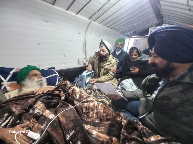ਉੱਚ ਪੱਧਰੀ ਟੀਮ ਨੇ ਕਿਸਾਨ ਆਗੂ ਨੂੰ ਇਹ ਵੀ ਦੱਸਿਆ ਕਿ ਮੈਡੀਕਲ ਟੀਮਾਂ ਧਰਨੇ ਵਾਲੀ ਥਾਂ ‘ਤੇ 24 ਘੰਟੇ ਡਿਊਟੀ ‘ਤੇ ਹਨ ਅਤੇ ਦੋ ਐਡਵਾਂਸਡ ਲਾਈਫ ਸਪੋਰਟ (ਏ.ਐੱਲ.ਐੱਸ.) ਐਂਬੂਲੈਂਸਾਂ 24 ਘੰਟੇ 7 ਦਿਨ (ਹਰ ਵੇਲੇ) ਧਰਨੇ ਵਾਲੀ ਸਥਾਨ ‘ਤੇ ਮੌਜੂਦ ਹਨ। ਇਸ ਐਂਬੂਲੈਂਸ ਵਿੱਚ ਜੀਵਨ ਸਹਾਇਤਾ ਤੇ ਦੇਖਭਾਲ ਦੇ ਅਨੁਸਾਰ ਲੋੜੀਂਦੀਆਂ ਸਾਰੀਆਂ ਦਵਾਈਆਂ ਅਤੇ ਉਪਕਰਨ ਮੌਜੂਦ ਹਨ, ਜਿਨ੍ਹਾਂ ਵਿੱਚ ਈਸੀਜੀ ਮਾਨੀਟਰ, ਡੀਫਿਬ੍ਰਿਲੇਟਰ, ਵੈਂਟੀਲੇਟਰ, ਸਕਿੰਗ ਮਸ਼ੀਨ, ਮਾਸਕ ਆਕਸੀਜਨ, ਨਾੜੀ ਰਾਹੀਂ ਤਰਲ ਪਦਾਰਥ ਦੇਣ ਲਈ ਸਾਜ਼ੋ-ਸਮਾਨ, ਸਾਹ ਲੈਣ ਵਾਲੇ ਇਨਟੂਬੇਸ਼ਨ ਉਪਕਰਨ, ਕੈਥੀਟਰਾਈਜ਼ੇਸ਼ਨ ਸਮੱਗਰੀ ਉਪਲਬਧ ਅਤੇ ਕਾਰਜਸ਼ੀਲ ਹੈ। ਉਨ੍ਹਾਂ ਨੇ ਕਿਸਾਨ ਆਗੂ ਨੂੰ ਆਰਜ਼ੀ ਹਸਪਤਾਲ ਵਿੱਚ ਸ਼ਿਫਟ ਹੋਣ ਦੀ ਅਪੀਲ ਵੀ ਕੀਤੀ ਜੋ ਕਿ ਸਾਰੀਆਂ ਐਮਰਜੈਂਸੀ ਦਵਾਈਆਂ ਅਤੇ ਉਪਕਰਨਾਂ ਨਾਲ ਲੈਸ ਹੈ ਅਤੇ ਇਹ ਹਸਪਤਾਲ ਉਨ੍ਹਾਂ ਦੇ ਮੰਚ ਤੋਂ ਮਹਿਜ਼ 700 ਮੀਟਰ ਦੀ ਦੂਰੀ ‘ਤੇ ਸਥਾਪਤ ਕੀਤਾ ਗਿਆ ਹੈ।