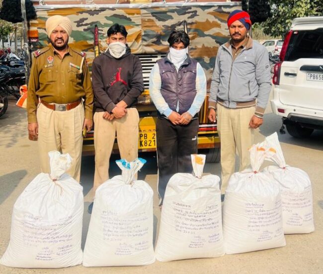 ਸ੍ਰੀ ਮੁਕਤਸਰ ਸਾਹਿਬ 4 ਫਰਵਰੀ (ਬਿਕਰਮਜੀਤ ਸਿੰਘ) ਸ. ਭਗਵੰਤ ਸਿੰਘ ਮਾਨ ਮੁੱਖ ਮੰਤਰੀ ਪੰਜਾਬ ਅਤੇ ਸ਼੍ਰੀ ਗੌਰਵ ਯਾਦਵ ਆਈ.ਪੀ.ਐਸ ਡੀ.ਜੀ.ਪੀ ਪੰਜਾਬ ਜੀ ਦੀਆਂ ਹਦਾਇਤਾਂ ਤਹਿਤ ਸ਼੍ਰੀ ਤੁਸ਼ਾਰ ਗੁਪਤਾ ਆਈ.ਪੀ.ਐਸ ਐਸ.ਐਸ.ਪੀ ਸ੍ਰੀ ਮੁਕਤਸਰ ਸਾਹਿਬ ਵੱਲੋਂ ਜਿਲ੍ਹਾ ਅੰਦਰ ਨਸ਼ਿਆਂ ਅਤੇ ਸ਼ਰਾਰਤੀ ਅੰਸਰਾਂ ਖਿਲਾਫ ਵਿੱਢੀ ਮੁਹਿੰਮ ਦੌਰਾਨ ਸ੍ਰੀ ਮਨਮੀਤ ਸਿੰਘ ਢਿੱਲੋ ਕਪਤਾਨ ਪੁਲਿਸ (ਇਨਵੈ) ਸ੍ਰੀ ਮੁਕਤਸਰ ਸਾਹਿਬ ਦੀ ਨਿਗਰਾਨੀ ਹੇਠ ਇੰਸਪੈਕਟਰ ਜਸਕਰਨਦੀਪ ਸਿੰਘ ਮੁੱਖ ਅਫਸਰ ਥਾਣਾ ਸਿਟੀ ਸ੍ਰੀ ਮੁਕਤਸਰ ਸਾਹਿਬ ਦੀ ਟੀਮ ਵੱਲੋਂ 2 ਵਿਅਕਤੀਆਂ ਨੂੰ 150 ਕਿੱਲੋ ਗ੍ਰਾਮ ਭੁੱਕੀ ਚੂਰਾ ਪੋਸਤ ਸਮੇਤ ਟਰੱਕ ਕਾਬੂ ਕਰਕੇ ਸਫਲਤਾ ਹਾਸਲ ਕੀਤੀ ਹੈ।