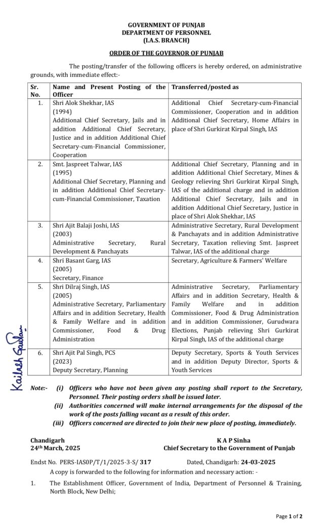 Homeਪੰਜਾਬ5 IAS ਅਧਿਕਾਰੀ ਤੇ PCS ਅਧਿਕਾਰੀ ਬਦਲੇ The PostmailMarch 24, 2025 8:52 pm 0 ਚੰਡੀਗੜ 24 ਮਾਰਚ। ਪੰਜਾਬ ਸਰਕਾਰ ਵੱਲੋਂ ਪੰਜ ਆਈਐਸ ਤੇ ਇੱਕ ਪੀਸੀਐਸ ਅਧਿਕਾਰੀਆਂ ਦੇ ਤਬਾਦਲੇ ਕੀਤੇ ਗਏ। CATEGORIES ਪੰਜਾਬ Share ThisAUTHORThe Postmail