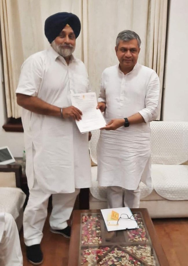 ਸੁਖਬੀਰ ਸਿੰਘ ਬਾਦਲ ਵੱਲੋਂ ਰੇਲਵੇ ਮੰਤਰੀ ਨਾਲ ਮੁਲਾਕਾਤ, ਫਿਰੋਜ਼ਪੁਰ ਹਲਕੇ ਵਿਚ ਪੈਂਦੇ ਅੰਡਰ ਬ੍ਰਿਜਾਂ ਤੇ ਮਾਲ ਗੱਡੀਆਂ ਵਾਸਤੇ ਨਵੇਂ ਪਲੈਟਫਾਰਮ ਦੀ ਉਸਾਰੀ ਦਾ ਮਿਲਿਆ ਭਰੋਸਾ