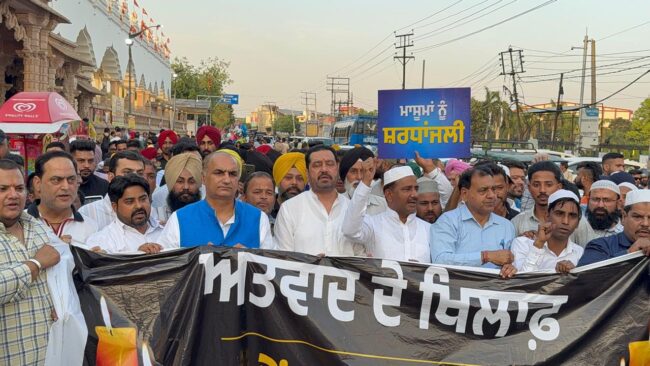 ਜਲੰਧਰ ਵਿੱਚ ਵਿਧਾਇਕ ਬਲਕਾਰ ਸਿੰਘ ਅਤੇ ਦਿਨੇਸ਼ ਢੱਲ ਨੇ ਮੋਮਬੱਤੀ ਮਾਰਚ ਦੀ ਅਗਵਾਈ ਕੀਤੀ ਜਿੱਥੇ ਉਨ੍ਹਾਂ ਨਾਲ ਸੀਨੀਅਰ ਨੇਤਾ ਦੀਪਕ ਬਾਲੀ ਅਤੇ ਸਥਾਨਕ ਨਾਗਰਿਕ ਸ਼ਾਮਲ ਹੋਏ।
