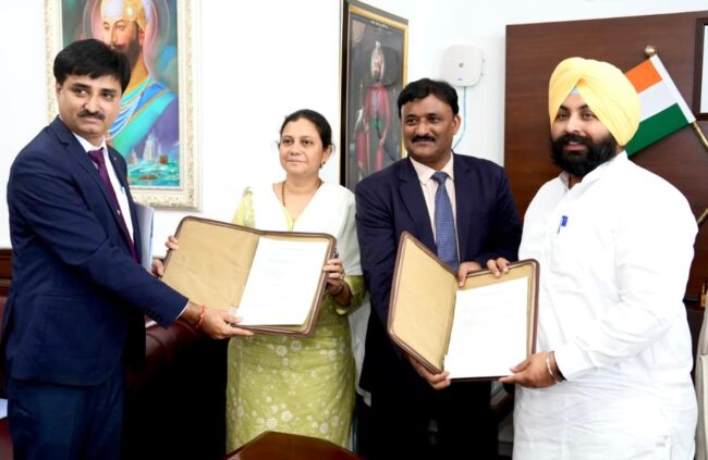 ਪੰਜਾਬ ਦੇ ਸਕੂਲ ਸਿੱਖਿਆ ਮੰਤਰੀ ਸ.ਹਰਜੋਤ ਸਿੰਘ ਬੈਂਸ ਅਤੇ ਸਕੱਤਰ ਸਕੂਲ ਸਿੱਖਿਆ ਵਿਭਾਗ ਸ੍ਰੀਮਤੀ ਅਨਿੰਦਿਤਾ ਮਿੱਤਰਾ, ਆਈਏਐਸ ਦੀ ਮੌਜੂਦਗੀ ਵਿੱਚ ਅੱਜ ਇੱਥੇ ਡਾਇਰੈਕਟੋਰੇਟ ਆਫ਼ ਐਲੀਮੈਂਟਰੀ ਐਜੂਕੇਸ਼ਨ (ਮਿਡ-ਡੇਅ ਮੀਲ) ਅਤੇ ਕੇਨਰਾ ਬੈਂਕ ਚੰਡੀਗੜ੍ਹ ਦਰਮਿਆਨ ਇੱਕ ਸਮਝੌਤਾ (ਐਮਓਯੂ) ਸਹੀਬੱਧ ਕੀਤਾ ਗਿਆ। ਇਸ ਭਾਈਵਾਲੀ ਦਾ ਉਦੇਸ਼ ਕੁੱਕ-ਕਮ-ਹੈਲਪਰਾਂ ਨੂੰ ਵਿੱਤੀ ਸੁਰੱਖਿਆ ਅਤੇ ਹੋਰ ਲਾਭ ਪ੍ਰਦਾਨ ਕਰਨਾ ਹੈ।