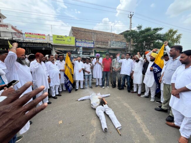 8ਵੇਂ ਦਿਨ ਤੱਕ ਵੀ ਮਾਫੀ ਨਾ ਮੰਗਣ ਦੇ ਸੰਦਰਭ ਵਿਚ ਆਮ ਆਦਮੀ ਪਾਰਟੀ ਵੱਲੋਂ ਸੁਨੀਲ ਜਾਖੜ ਖਿਲਾਫ ਰੋਸ ਪ੍ਰਦਰਸ਼ਨ, ਫੂਕਿਆ ਪੂਤਲਾ