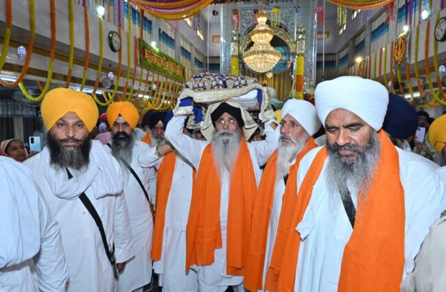 ਸ਼੍ਰੋਮਣੀ ਗੁਰਦੁਆਰਾ ਪ੍ਰਬੰਧਕ ਕਮੇਟੀ ਵੱਲੋਂ ਨੌਵੇਂ ਪਾਤਸ਼ਾਹ ਸ੍ਰੀ ਗੁਰੂ ਤੇਗ ਬਹਾਦਰ ਸਾਹਿਬ ਜੀ ਦੇ ਸ਼ਹੀਦੀ ਸਾਕੇ ਦੀ 350 ਸਾਲਾ ਸ਼ਤਾਬਦੀ ਦੇ ਸਬੰਧ ਵਿਚ ਗੁਰਦੁਆਰਾ ਧੋਬੜੀ ਸਾਹਿਬ ਆਸਾਮ ਤੋਂ ਆਰੰਭ ਹੋਇਆ ਸ਼ਹੀਦੀ ਨਗਰ ਕੀਰਤਨ ਅੱਜ ਖ਼ਾਲਸਈ ਜਾਹੋ ਜਲਾਲ ਨਾਲ ਤਖ਼ਤ ਸ੍ਰੀ ਦਮਦਮਾ ਸਾਹਿਬ ਤਲਵੰਡੀ ਸਾਬੋ ਤੋਂ ਆਪਣੇ ਅਗਲੇ ਪੜਾਅ ਗੁਰਦੁਆਰਾ ਸ੍ਰੀ ਦਰਬਾਰ ਸਾਹਿਬ ਸ੍ਰੀ ਮੁਕਤਸਰ ਸਾਹਿਬ ਲਈ ਰਵਾਨਾ ਹੋਇਆ। ਨਗਰ ਕੀਰਤਨ ਦੀ ਰਵਾਨਗੀ ਤੋਂ ਪਹਿਲਾਂ ਸ਼੍ਰੋਮਣੀ ਕਮੇਟੀ ਪ੍ਰਧਾਨ ਐਡਵੋਕੇਟ ਹਰਜਿੰਦਰ ਸਿੰਘ ਧਾਮੀ ਤੇ ਤਖ਼ਤ ਸ੍ਰੀ ਦਮਦਮਾ ਸਾਹਿਬ ਦੇ ਜਥੇਦਾਰ ਗਿਆਨੀ ਟੇਕ ਸਿੰਘ ਨੇ ਪੰਜ ਪਿਆਰੇ ਸਾਹਿਬਾਨ ਅਤੇ ਨਿਸ਼ਾਨਚੀ ਸਿੰਘਾਂ ਨੂੰ ਸਿਰੋਪਾਓ ਦਿੱਤੇ।