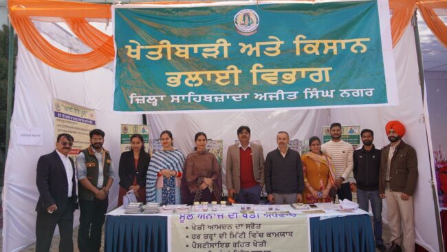 ਸਾਲ 2025-26 ਦੌਰਾਨ ਹਾੜ੍ਹੀ ਦੀਆਂ ਫਸਲਾਂ ਸਬੰਧੀ ਤਕਨੀਕੀ ਜਾਣਕਾਰੀ ਅਤੇ ਝੋਨੇ ਦੀ ਪਰਾਲੀ ਦੀ ਸਾਂਭ ਸੰਭਾਲ ਸਬੰਧੀ ਖੇਤੀਬਾੜੀ ਤੇ ਕਿਸਾਨ ਭਲਾਈ ਵਿਭਾਗ ਐਸ ਏ ਐਸ ਨਗਰ ਵੱਲੋਂ ਆਤਮਾ ਸਕੀਮ ਅਧੀਨ ਕਿਸਾਨ ਵਿਕਾਸ ਚੈਂਬਰ ਵਿਖੇ ਜ਼ਿਲ੍ਹਾ ਪੱਧਰੀ ਕਿਸਾਨ ਸਿਖਲਾਈ ਕੈਂਪ ਲਗਾਇਆ ਗਿਆ। ਇਸ ਕੈਂਪ ਵਿੱਚ ਸੰਯੁਕਤ ਡਾਇਰੈਕਟਰ ਖੇਤੀਬਾੜੀ (ਵਿਸਥਾਰ ਤੇ ਸਿਖਲਾਈ) ਡਾ. ਕਰਨਜੀਤ ਸਿੰਘ ਗਿੱਲ ਵੱਲੋਂ ਵਿਸ਼ੇਸ਼ ਤੌਰ ਤੇ ਸਿਰਕਤ ਕੀਤੀ ਗਈ। ਕੈਂਪ ਵਿੱਚ ਆਏ ਹੋਏ ਕਿਸਾਨਾਂ ਨਾਲ ਖੇਤੀ ਸਬੰਧੀ ਪੰਜਾਬ ਸਰਕਾਰ ਵੱਲੋਂ ਬਣਦੀ ਹਰੇਕ ਤਰ੍ਹਾਂ ਦੀ ਸਹੂਲਤ ਕਿਸਾਨਾਂ ਨੂੰ ਮੁਹੱਇਆ ਕਰਵਾਉਣ ਦਾ ਯਕੀਨ ਦਿਵਾਇਆ ਅਤੇ ਕਿਸਾਨ ਦੇ ਸਵਾਲਾਂ ਦੇ ਜਵਾਬ ਵੀ ਦਿੱਤੇ।