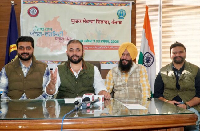 ਪੰਜਾਬ ਸਰਕਾਰ ਵੱਲੋਂ ਪੰਜਾਬ ਰਾਜ ਅੰਤਰ-ਯੂਨੀਵਰਸਿਟੀ ਯੁਵਕ ਮੇਲਾ ਗੁਰੂ ਨਾਨਕ ਦੇਵ ਯੂਨੀਵਰਸਿਟੀ ਅੰਮ੍ਰਿਤਸਰ ਵਿਖੇ 30 ਨਵੰਬਰ ਤੋਂ 3 ਦਸੰਬਰ ਤੱਕ ਕਰਵਾਇਆ ਜਾ ਰਿਹਾ ਹੈ ਜਿਸ ਵਿੱਚ ਰਾਜ ਭਰ ਦੀਆਂ 32 ਯੂਨੀਵਰਸਿਟੀਆਂ ਤੋਂ 2500 ਤੋਂ ਵੱਧ ਵਿਦਿਆਰਥੀ ਸੱਭਿਆਚਾਰਕ, ਕਲਾਤਮਕ, ਗਾਇਨ, ਡਾਂਸ ਆਦਿ ਵਰਗਾਂ ਦੇ ਜੋਸ਼ੀਲੇ ਮੁਕਾਬਲਿਆਂ ਵਿੱਚ ਆਪਣੀ ਪ੍ਰਤਿਭਾ ਦਿਖਾਉਣਗੇ।