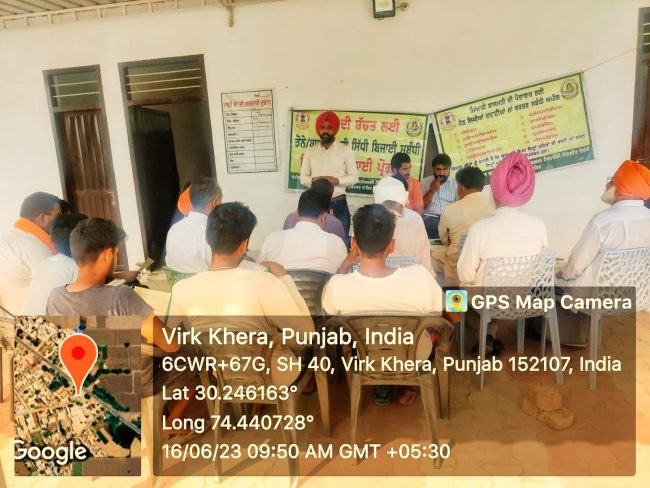 ਉਹਨਾ ਵੱਲੋ ਦੱਸਿਆ ਗਿਆ ਕਿ ਕਿਸਾਨ ਵੀਰ ਇਸ ਸਬੰਧੀ ਖੇਤੀਬਾੜੀ ਵਿਭਾਗ ਦੇ Agrimachinerypb.Com ਪੋਰਟਲ ਤੇ ਅਪਲਾਈ ਕਰਕੇ ਇਸ ਦਾ ਲਾਭ ਲੈ ਸਕਦੇ ਹਨ। ਪੋਰਟਲ ਤੇ ਅਪਲਾਈ ਕਰਨ ਲਈ ਕਿਸਾਨ ਨੂੰ ਆਪਣੀ ਜਮੀਨ ਦੇ ਖੇਵਟ ਨੰ:/ਖਸਰਾ ਨੰ: ਅਤੇ ਸਿੱਧੀ ਬਿਜਾਈ ਅਧੀਨ ਰਕਬੇ ਦੀ ਜਾਣਕਾਰੀ ਦੇਣੀ ਹੋਵੇਗੀ ਅਤੇ ਇਸ ਪੋਰਟਲ ਤੇ ਕਿਸਾਨ ਵੀਰ 25 ਜੂਨ ਤੱਕ ਆਪਣੀ ਰਜਿਸਟ੍ਰੇਸ਼ਨ ਕਰ ਸਕਦੇ ਹਨ।ਇਸ ਤੋਂ ਇਲਾਵਾ ਉਹਨਾਂ ਵੱਲੋ ਕਿਸਾਨਾ ਨੂੰ ਦੱਸਿਆ ਗਿਆ ਕਿ ਝੋਨੇ ਦੀ ਸਿੱਧੀ ਬਿਜਾਈ ਕਰਨ ਨਾਲ ਪਾਣੀ ਦੀ ਬਚਤ ਹੁੰਦੀ ਹੈ ਅਤੇ ਲੇਬਰ ਤੇ ਆਉਣ ਵਾਲੇ ਖਰਚੇ ਦੀ ਬਚਤ ਹੁੰਦੀ ਹੈ।ਉਹਨਾਂ ਨੇ ਝੋਨੇ ਦੀ ਸਿੱਧੀ, ਬਿਜਾਈ ਸਬੰਧੀ ਜਰੂਰੀ ਨੁਕਤੇ ਜਿਵੇਂ ਕਿ ਖਾਦਾ ਦੀ ਸੁਚੱਜੀ ਵਰਤੋ, ਨਦੀਨਾ ਦੀ ਸਮੱਸਿਆ ਤੋ ਬਚਾਅ, ਕੀੜੇ ਮਕੋੜਿਆ ਅਤੇ ਬਿਮਾਰੀਆ ਦੀ ਰੋਕਥਾਮ ਅਤੇ ਬਾਸਮਤੀ ਦੀ ਫਸਲ ਉਪਰ ਪੰਜਾਬ ਸਰਕਾਰ ਵੱਲੋ ਬੈਨ ਕੀਤੀਆ ਗਈਆ ਕੀਟਨਾਸ਼ਕ ਦਵਾਈਆ ਦੀ ਵਰਤੋਂ ਨਾ ਕਰਨ ਬਾਰੇ ਵਿਸਥਾਰਪੂਰਵਕ ਜਾਣਕਾਰੀ ਦਿੱਤੀ ਗਈ।ਇਸ ਮੌਕੇ ਸ਼੍ਰੀ ਪਵਨਪ੍ਰੀਤ ਸਿੰਘ, ਏ.ਐਸ.ਆਈ. ਸਰਕਲ ਵਿਰਕ ਖੇੜਾ ਵੱਲੋ ਕਿਸਾਨਾਂ ਨੂੰ ਮਿੱਟੀ ਪਾਣੀ ਦੇ ਸੈਂਪਲ ਲੈਣ ਦੀ ਵਿਧੀ ਅਤੇ ਪਰਖ ਕਰਾਉਣ ਬਾਰੇ ਜਾਗਰੂਕ ਕੀਤਾ ਅਤੇ ਇਸ ਦੇ ਨਾਲ ਹੀ ਭਾਰਤ ਸਰਕਾਰ ਦੀ ਚੱਲ ਰਹੀ ਪੀ.ਐਮ. ਕਿਸਾਨ ਸਨਮਾਨ ਨਿੱਧੀ ਯੋਜਨਾ ਬਾਰੇ ਕਿਸਾਨਾਂ ਨੂੰ ਜਾਣਕਾਰੀ ਦਿੱਤੀ।ਇਸ ਕੈਂਪ ਦੌਰਾਨ ਪਿੰਡ ਵਿੱਚ ਰੱਖੇ ਗਏ ਕਿਸਾਨ ਮਿੱਤਰ, ਸੁਪਰਵਾਇਜਰ ਅਤੇ ਪਿੰਡ ਦੇ ਮੋਹਤਵਾਰ ਕਿਸਾਨ ਹਾਜਰ ਸਨ।
