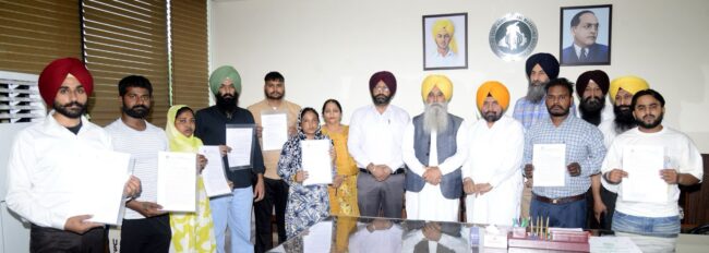 ਗੁਰਮੀਤ ਸਿੰਘ ਖੁੱਡੀਆਂ ਨੇ ਪੰਜਾਬ ਮੰਡੀ ਬੋਰਡ ਵਿੱਚ ਅੱਠ ਉਮੀਦਵਾਰਾਂ ਨੂੰ ਤਰਸ ਦੇ ਆਧਾਰ ‘ਤੇ ਨਿਯੁਕਤੀ ਪੱਤਰ ਸੌਂਪੇ