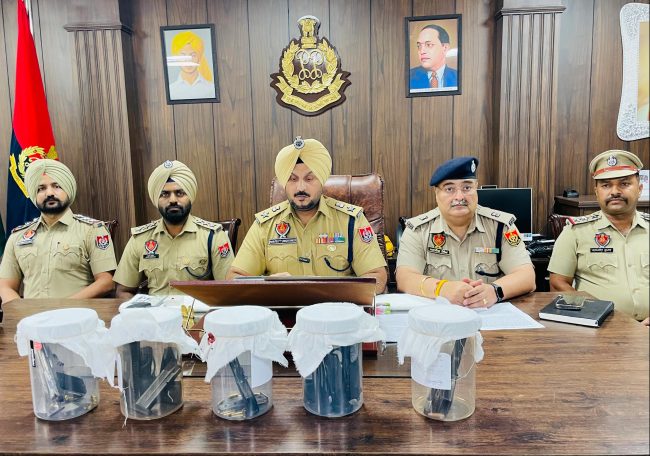 ਫਾਜਿਲਕਾ ਪੁਲੀਸ ਵੱਲੋਂ ਅੱਤਵਾਦੀ ਗਿਰੋਹ ਨੂੰ ਟਰੇਸ ਕਰਕੇ 04 ਦੋਸ਼ੀ ਸਮੇਤ 05 ਪਿਸਟਲ, 09 ਮੈਗਜ਼ੀਨ ਅਤੇ 23 ਜਿੰਦਾਂ ਕਾਰਤੂਸ ਗ੍ਰਿਫਤਾਰ