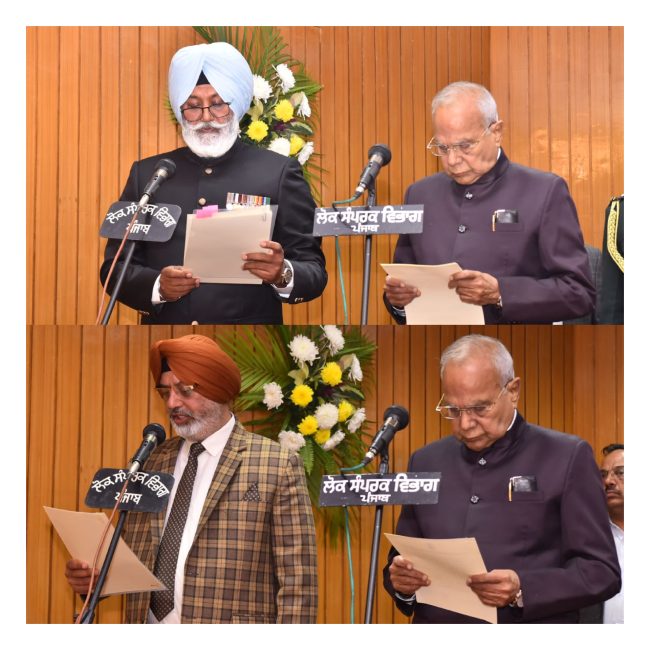 ਜਤਿੰਦਰ ਸਿੰਘ ਔਲਖ ਨੇ ਚੇਅਰਮੈਨ ਪੰਜਾਬ ਲੋਕ ਸੇਵਾ ਕਮਿਸ਼ਨ ਅਤੇ ਇੰਦਰਪਾਲ ਸਿੰਘ ਨੇ ਰਾਜ ਮੁੱਖ ਸੂਚਨਾ ਕਮਿਸ਼ਨਰ ਦੇ ਅਹੁਦੇ ਲਈ ਚੁੱਕੀ ਸਹੁੰ
