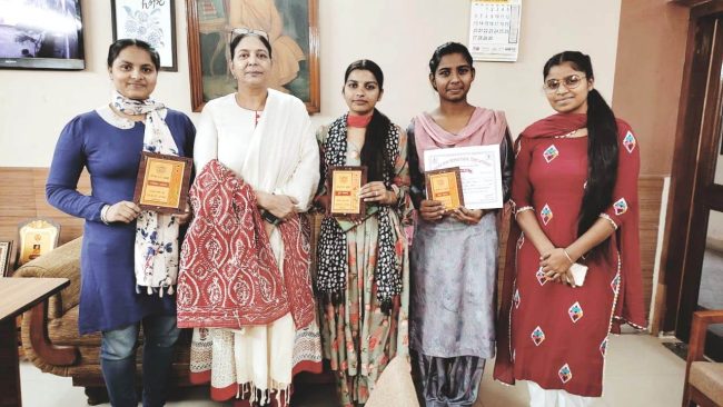 ਪੰਜਾਬ ਸਰਕਾਰ ਦੇ ਦਿਸ਼ਾ ਨਿਰਦੇਸ਼ਾਂ ਅਨੁਸਾਰ ਮਨਾਏ ਜਾ ਰਹੇ ਪੰਜਾਬੀ ਮਾਹ-2022 ਦਾ ਦੌਰਾਨ ਗੋਪੀਚੰਦ ਆਰੀਆ ਮਹਿਲਾ ਕਾਲਜ ਤੇ ਪ੍ਰਿੰਸੀਪਲ ਡਾਕਟਰ ਰੇਖਾ ਸੂਦ ਹਾਂਡਾ ਜੀ ਦੀ ਯੋਗ ਨੁਮਾਇੰਦਗੀ ਅਧੀਨ, ਯੂਥ ਵੈਲਫੇਅਰ ਵਿਭਾਗ ਦੇ ਡੀਨ ਅਤੇ ਕਾਲਜ ਭਾਸ਼ਾ ਮੰਚ ਦੇ ਕਨਵੀਨਰ ਡਾਕਟਰ ਸ਼ਕੁੰਤਲਾ ਮਿੱਡਾ ਜੀ ਦੀ ਨਿਗਰਾਨੀ ਹੇਠ ਕਾਲਜ ਦੀਆਂ ਵਿਦਿਆਰਥਣਾਂ ਨੇ ਡੀ ਏ ਵੀ ਕਾਲਜ ਅਬੋਹਰ ਵਿਖੇ 18 ਨਵੰਬਰ 2022 ਨੂੰ ਪੰਜਾਬੀ ਮਾਹ ਦੇ ਸਬੰਧ ਵਿਚ ਕਰਵਾਏ ਗਏ ਵੱਖ-ਵੱਖ ਮੁਕਾਬਲਿਆਂ ਵਿੱਚ ਭਾਗ ਲਿਆ ਅਤੇ ਜਿੱਤ ਹਾਸਲ ਕੀਤੀ। ਸਲੋਗਨ ਲਿਖਣ ਦੇ ਮੁਕਾਬਲੇ ਵਿਚ ਤਵਪ੍ਰੀਤ ਕੌਰ ਨੇ ਪਹਿਲਾ ਇਨਾਮ ਹਾਸਿਲ ਕੀਤਾ ਜਦ ਕਿ ਸੁੰਦਰ ਲਿਖਾਈ ਮੁਕਾਬਲੇ ਵਿੱਚ ਗੀਤਾ ਨੇ ਦੂਜਾ ਇਨਾਮ ਅਤੇ ਕਵਿਤਾ ਉਚਾਰਨ ਮੁਕਾਬਲੇ ਵਿੱਚ ਪੁਸ਼ਪਾ ਰਾਣੀ ਨੇ ਤੀਜਾ ਇਨਾਮ ਪ੍ਰਾਪਤ ਕੀਤਾ। ਇਸ ਮੌਕੇ ਪ੍ਰਿੰਸੀਪਲ ਡਾਕਟਰ ਰੇਖਾ ਸੂਦ ਹਾਂਡਾ ਨੇ ਵਿਦਿਆਰਥਣਾਂ ਨੂੰ ਅਸ਼ੀਰਵਾਦ ਅਤੇ ਵਧਾਈ ਦਿੰਦਿਆਂ ਅੱਗੇ ਤੋਂ ਵੀ ਅਜਿਹੀਆਂ ਪ੍ਰਾਪਤੀਆਂ ਹਾਸਲ ਕਰਨ ਲਈ ਪ੍ਰੇਰਿਤ ਕੀਤਾ।