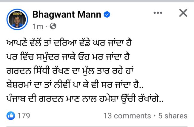 ਕਿਉਂ ਕਿਹਾ ਭਗਵੰਤ ਮਾਨ ਨੇ ਕਿ,, ਬੇਸ਼ਰਮਾਂ ਦਾ ਤਾਂ ਨੀਵੀ ਪਾ ਕੇ ਵੀ ਸਰ ਜਾਂਦਾ ਹੈ